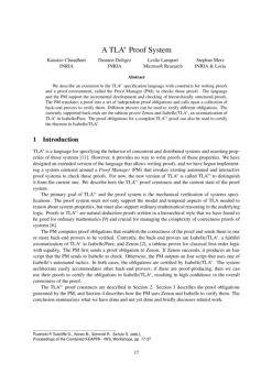functions are defined axiomatically rather than being represented as sets of ordered pairs. ... A TLA+ Proof System Chaudhuri, Doligez, Lamport, Merz B A TLA+