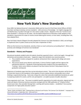 1 Alliance for Quality Education January 2012 New York State’s New Standards Since 2009, the National Governor’s ...