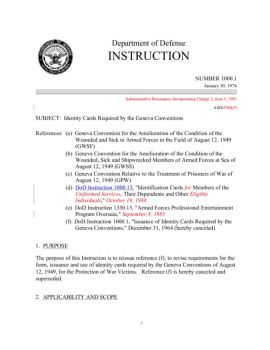Administrative Reissuance Incorporating Change 2, June 5, 1991 ASD (FM&P) SUBJECT: Identity Cards Required by the Geneva Conventions ... armlet. In case of loss ...