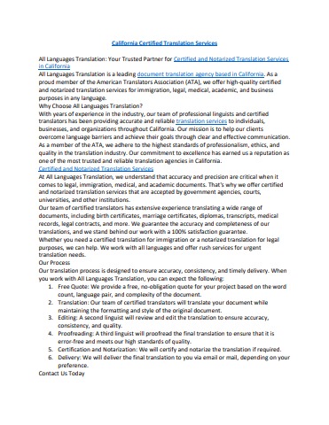 All Languages Translation is a leading document translation agency based in California. As a