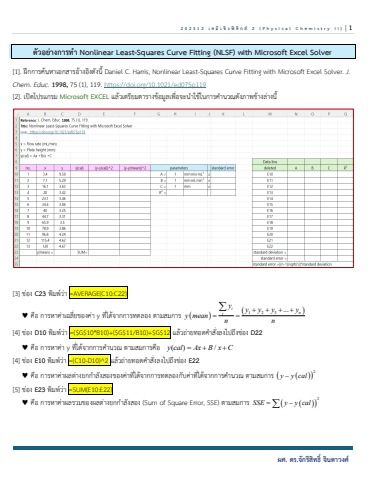 ตัวอย่างการทำ Nonlinear Least-Squares Curve Fitting (NLSF) with Microsoft Excel Solver