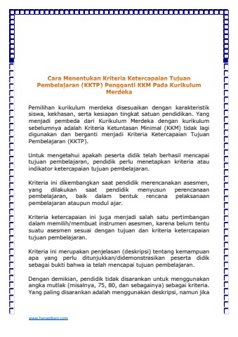 Cara Menentukan Kriteria Ketercapaian Tujuan Pembelajaran (KKTP) Pengganti KKM Pada Kurikulum Merdeka - (www.hanapibani.com)