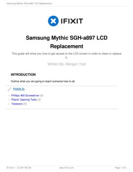Samsung Mythic SGH-a897 LCD Replacement This guide will show you how to get access to the LCD screen in order to clean or replace it. Written By: Morgan Yost