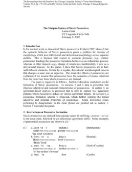 2 mother-POSS-NOM.MASC.SG house-NOM.MASC.SG ‘the mother’s house’ Although all Slavic languages have prenominal possessives, there is a