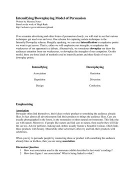 Intensifying/Downplaying Model of Persuasion Written by Marnina Norys Based on the work of Hugh Rank ... Intensifying Association Repetition Design Downplaying Omission