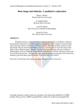 Journal of Management and Marketing Research, Volume 17 – October, 2014 Body image and ethnicity, Page 4 Holmstrom suggests that younger women (who are less likely ...
