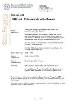 GRG 1/44 Police reports to the Coroner - archives.sa.gov.au