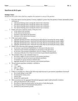An unemployment rate of zero is unobtainable. c. Per-capita real GDP depends on productivity. d. ... ExamView Pro - sgch20-21.tst Author: econjn Created Date:
