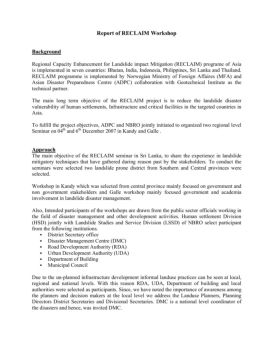 mitigatory techniques that have gathered during reason past by the stakeholders. To conduct the seminars were selected two landslide prone district from Southern and ...
