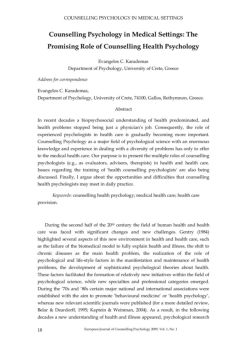 Counselling Psychology in Medical Settings: The Promising ...