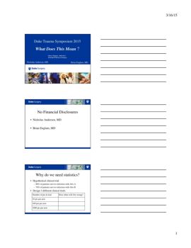 3/16/15! 1! Duke Trauma Symposium 2015! What Does This Mean ?! Mark L Shapiro, MD FACS! Associate Professor of Surgery! Nicholas Andersen, MD !Brian Englum, MD