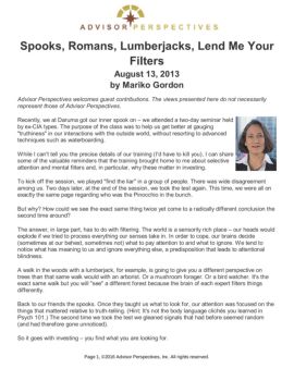 Spooks, Romans, Lumberjacks, Lend Me Your Filters August 13, 2013 by Mariko Gordon Advisor Perspectives welcomes guest contributions. The views presented here do not ...