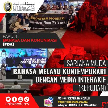 Semestinya, UniSZA menawarkan program pengajian yang menarik untuk adik-adik ceburi di bawah Fakulti Bahasa dan Komunikasi (FBK) iaitu: