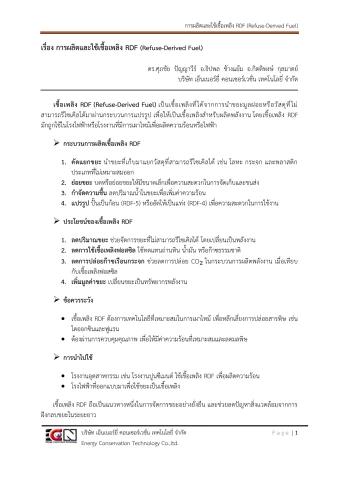 เรื่อง การผลิตและใช้เชื้อเพลิง RDF (Refuse-Derived Fuel)