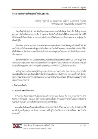 เรื่อง ผลกระทบของก๊าซเรดอนในบ้านอยู่อาศัย