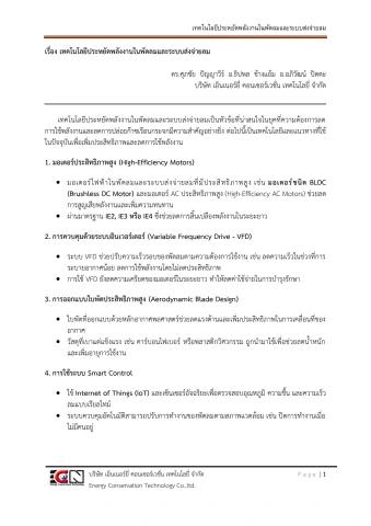 เรื่อง เทคโนโลยีประหยัดพลังงานในพัดลมและระบบส่งจ่ายลม