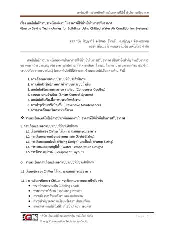 เรื่อง เทคโนโลยีการประหยัดพลังงานในอาคารที่ใช้น้ำเย็นในการปรับอากาศ