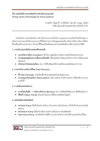 เรื่อง เทคโนโลยีการประหยัดพลังงานสำหรับระบบอบแห้ง