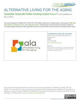 ALTERNATIVE LIVING FOR THE AGING GuideStar Nonprofit Profile Charting Impact Report * Last Updated on 02.17.2014 This report represents ALTERNATIVE LIVING FOR THE ...