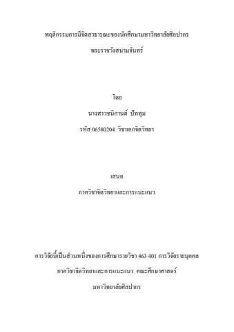 พฤติกรรมจิตสาธารณะของนักศึกษา มหาวิทยาลัยศิลปากร