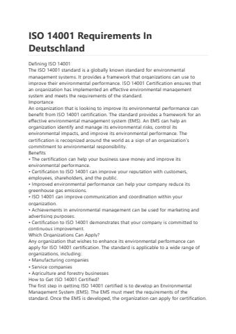 ISO 14001 ReqISO 14001 Requirements In Deutschlanduirements In Deutschland