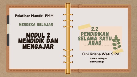 Topik "Merdeka Belajar" Modul 2 Mendidik dan mengajar sub judul 2.2 Pendidikan selama Satu Abad Oleh Oni Krisna Wati S.Pd SMKN 1 Glagah Banyuwangi