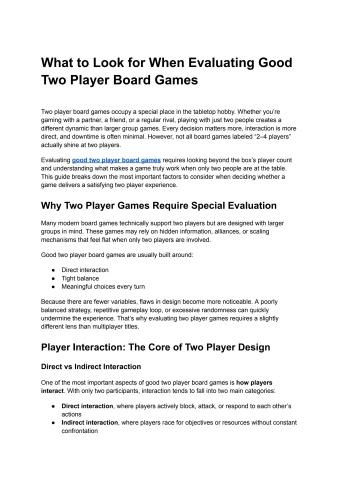 Explore what makes good two player board games worth playing, with insights on mechanics, balance, complexity, and long-term replayability.