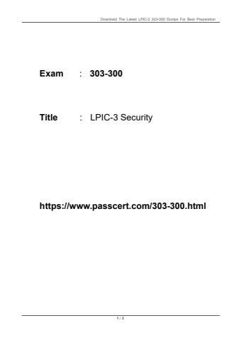 With the latest LPIC-3 Security 303-300 Dumps, exclusively cracked by the expert team at Passcert, you can now enhance your chances of acing the exam with ease.