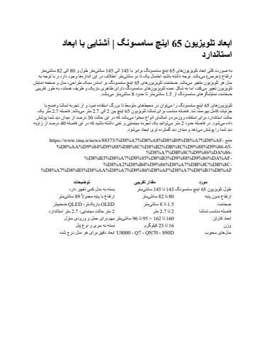 ابعاد تلویزیون 65 اینچ سامسونگ