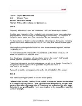 © KC Distance Learning Course: English 4 Foundations Unit: War and Peace Section: Persuasive Writing Tutorial: Writing Introductions and Conclusions