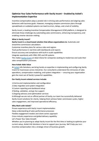 Website: https://asitekinfo.com/optimize-your-sales-performance-with-xactly-incent-enabled-by-asiteks-implementation-expertise/