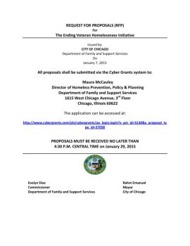 REQUEST FOR PROPOSALS (RFP) For The Ending Veteran Homelessness Initiative Issued by: CITY OF CHICAGO Department of Family and Support Services