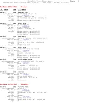 Holyoke Police Department Page: 4 Dispatch Log From: 07/15/2014 Thru: 07/22/2014 0000 - 0700 Printed: 07/22/2014 Charges: SHOPLIFTING BY ASPORTATION