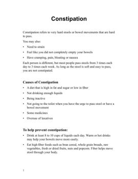Constipation refers to very hard stools or bowel movements that are hard to pass. You may also: • Need to strain • Feel like you did not completely empty your bowels