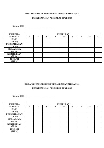 BORANG PEMARKAHAN PERTANDINGAN MEMASAK