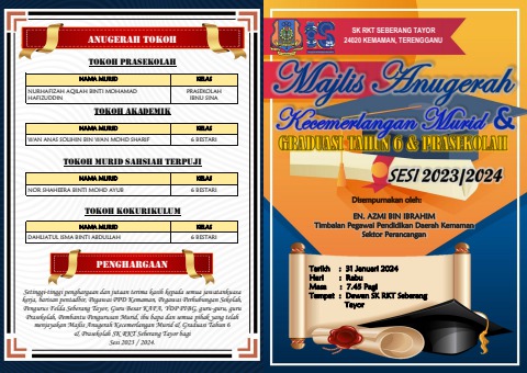 BUKU PROGRAM MAJLIS ANUGERAH KECEMERLANGAN MURID & GRADUASI TAHUN 6 & PRASEKOLAH SESI AKADEMIK 2023/2024
