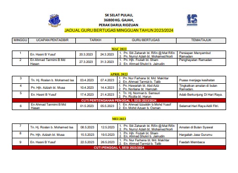 JADUAL BERTUGAS GURU 2023