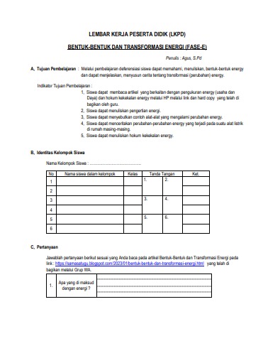 LKPD bentuk-bentuk dan transformasi energi