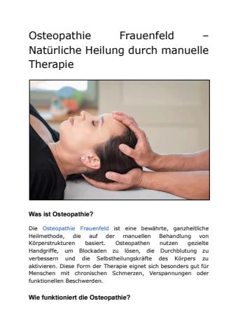 Die Osteopathie Frauenfeld bietet eine natürliche und ganzheitliche Lösung für zahlreiche gesundheitliche Beschwerden. Die Manuelle Therapie Kosten variieren je nach Praxis, doch viele Krankenkassen unterstützen die Behandlung finanziell. Wer eine sanfte und effektive Methode zur Schmerzlinderung und Gesundheitsförderung sucht, ist bei einem erfahrenen Osteopathen in guten Händen.