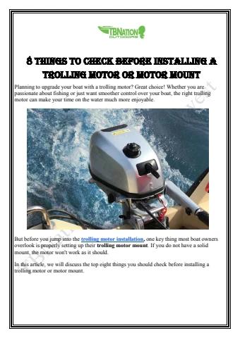 Installing a trolling motor or motor mount is not as hard as it seems. If you take the time to check everything in advance, like choosing the right location and planning for trolling motor trays and wiring, you can seamlessly install your trolling motor in no time.