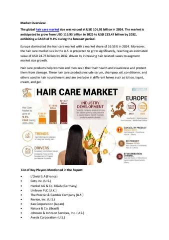 Hair Care Market 2025, Industry Trends, Size, and Future Forecast to 2032