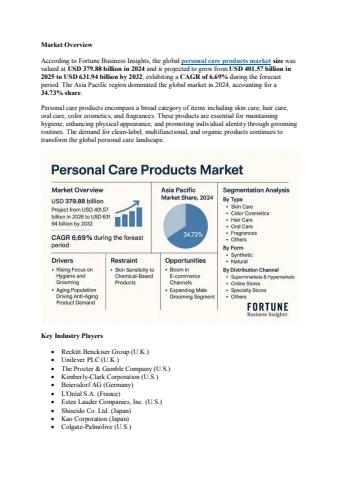 According to Fortune Business Insights, the global personal care products market size was valued at USD 379.88 billion in 2024
