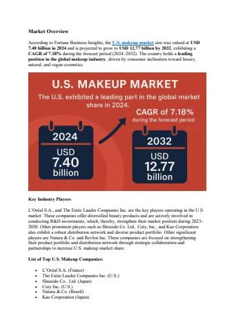 According to Fortune Business Insights, the U.S. makeup market size was valued at USD 7.40 billion in 2024 and is projected to grow to USD 12.77 billion by 2032