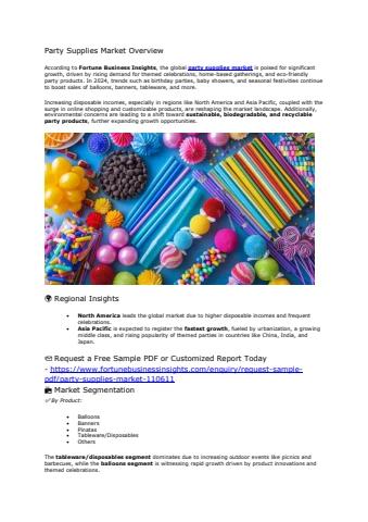 According to Fortune Business Insights, the global party supplies market is poised for significant growth, driven by rising demand for themed celebrations, home-based gatherings, and eco-friendly party products.