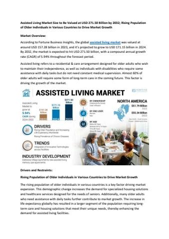 Assisted Living Market Size to Be Valued at USD 271.50 Billion by 2032; Rising Population of Older Individuals in Various Countries to Drive Market Growth