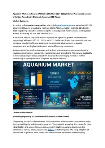 According to Fortune Business Insights, the global aquarium market was valued at USD 3.60 billion in 2023 and is projected to rise from USD 3.79 billion in 2024 to USD 6.21 billion by 2032, registering a CAGR of 6.36% during the forecast period.