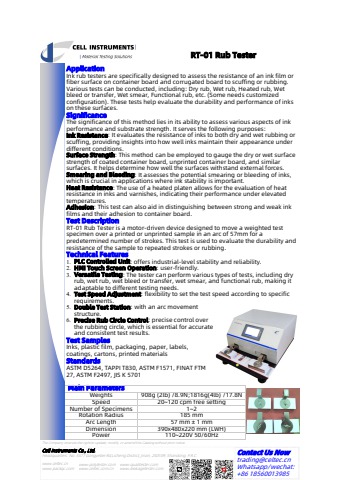 Wet rub testing with the RT-01 Rub Tester is essential for ensuring the durability and quality of printed materials in moist conditions. Its precise control, compliance with standards, and versatility make it an indispensable tool in material testing.