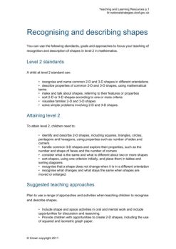 Recognising and describing shapes You can use the following standards, goals and approaches to focus your teaching of recognition and description of shapes in level 2 ...