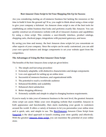 Get the Best Amazon Clone Script to quickly and easily set up your own successful online shopping site with all the features and functionality of a leading e-commerce platform like Amazon. Customizable and user-friendly, the Sangvish Amazon clone script is perfect for entrepreneurs looking to start their own e-commerce businesses.
