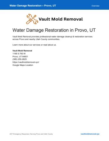 When water damage strikes, acting quickly is essential to prevent further destruction and restore safety. Vault Mold Removal provides 24/7 water damage restoration services in Provo, UT, helping homeowners and businesses recover efficiently and effectively.